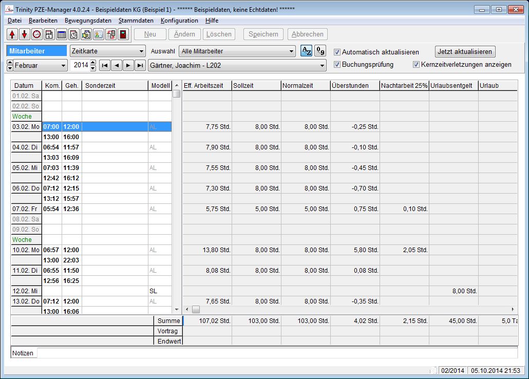 Deshalb sind die Zeitmodelle bei Trinity keine starren Programmfunktionen, sondern Stammdaten. Hierdurch können auch "exotische" Zeitmodelle korrekt abgerechnet werden. Die frei definierbaren Zeitmodelle sind somit die "Zentrale" der Trinity Zeiterfassung.